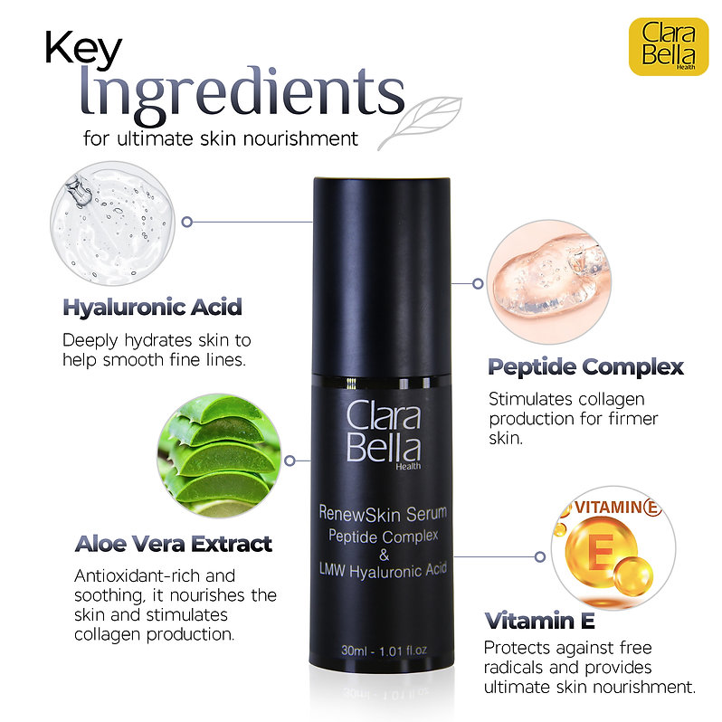סרום RenewSkin – קומפלקס פפטידים וחומצה היאלורונית במשקל מולקולרי נמוך להזנה ושיקום העור